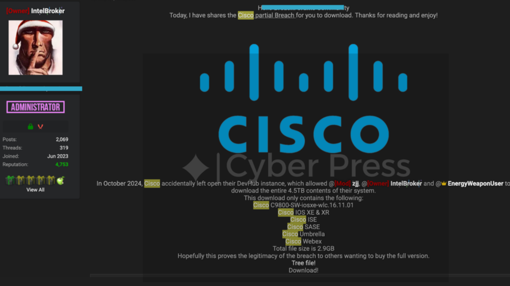 In a significant cybersecurity incident, Cisco Data Breach, a global leader in networking and IT solutions, has reportedly suffered a massive data breach. The breach, attributed to the hacker group IntelBroker, has resulted in the alleged exfiltration of 4.5TB of sensitive data. This incident has sparked widespread concern across the tech and cybersecurity communities.