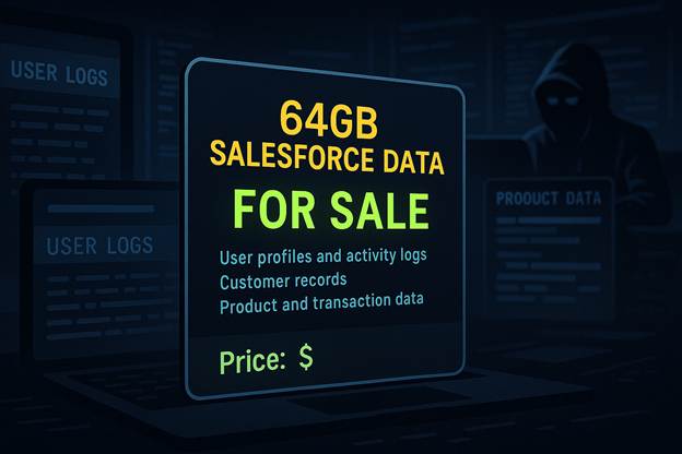 Attackers posted on a cybercriminal forum that they were selling 64 gigabytes of data exfiltrated from Salesforce, allegedly containing:
