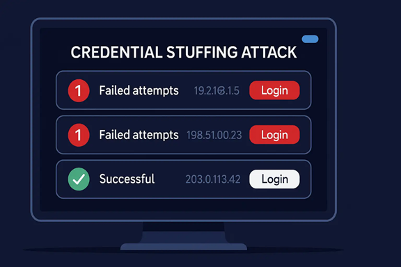 Credential stuffing is a type of cyberattack in which attackers use automated tools to submit stolen usernames and passwords in bulk across multiple websites. These credentials are usually harvested from previous data breaches on unrelated platforms and sold or shared on the dark web.