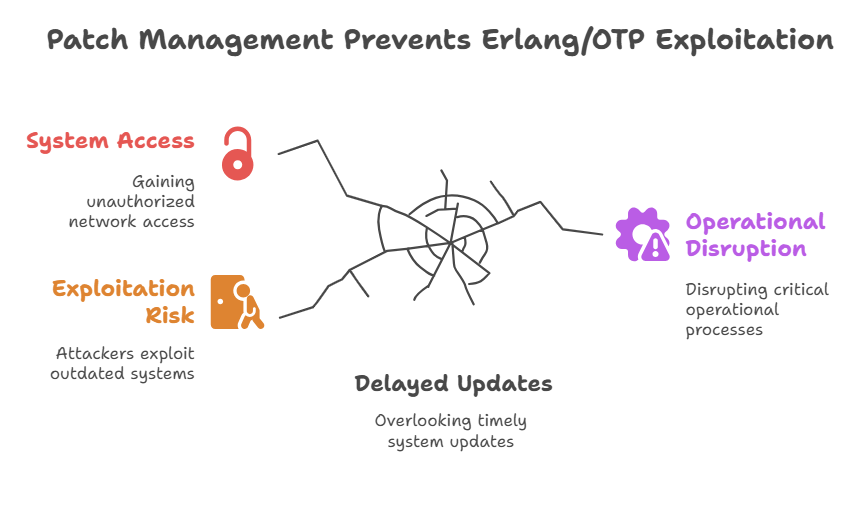If patching immediately is not possible, organizations should implement temporary security measures such as network segmentation, access controls, and intrusion prevention rules to limit exploitation risks until updates can be safely applied. In the case of the Erlang/OTP incident, companies that acted swiftly with patches and compensating controls avoided major downtime and financial loss.