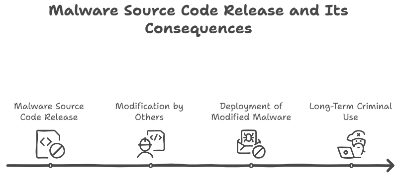 When malware source code is released publicly, risks escalate. Others can modify and deploy it, similar to teaching everyone how to make a weapon. ERMAC V3.0’s source code could be used for years by criminals.