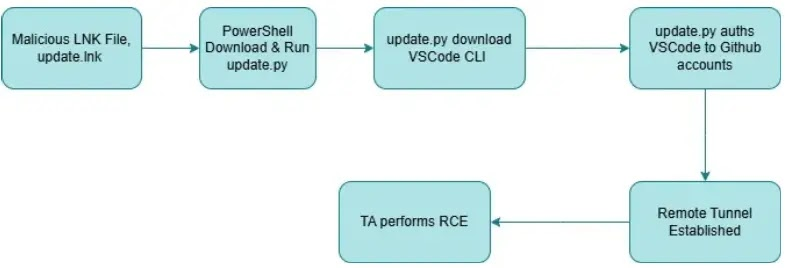Threat actors exploit the VSCode Remote Tunnels feature by delivering malicious payloads that trick users into unwittingly installing compromised scripts. Let’s delve into the detailed process of how these attacks unfold.