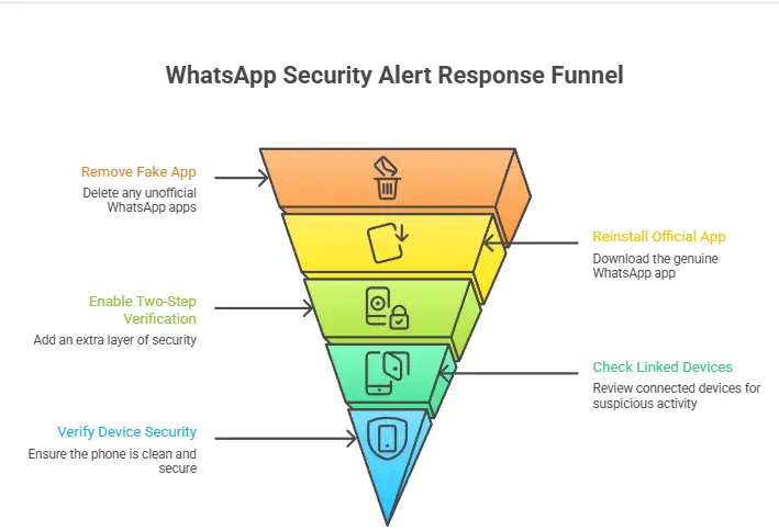 For a regular user, the response should be calm and direct. Remove any app that did not come from the official route. Reinstall only the official WhatsApp app. Turn on two-step verification. Check linked devices. And, if the phone acted strangely after the install, treat the device as potentially exposed until it is cleaned and verified. That is the simplest safe response to this WhatsApp security alert fake iOS app spyware warning.